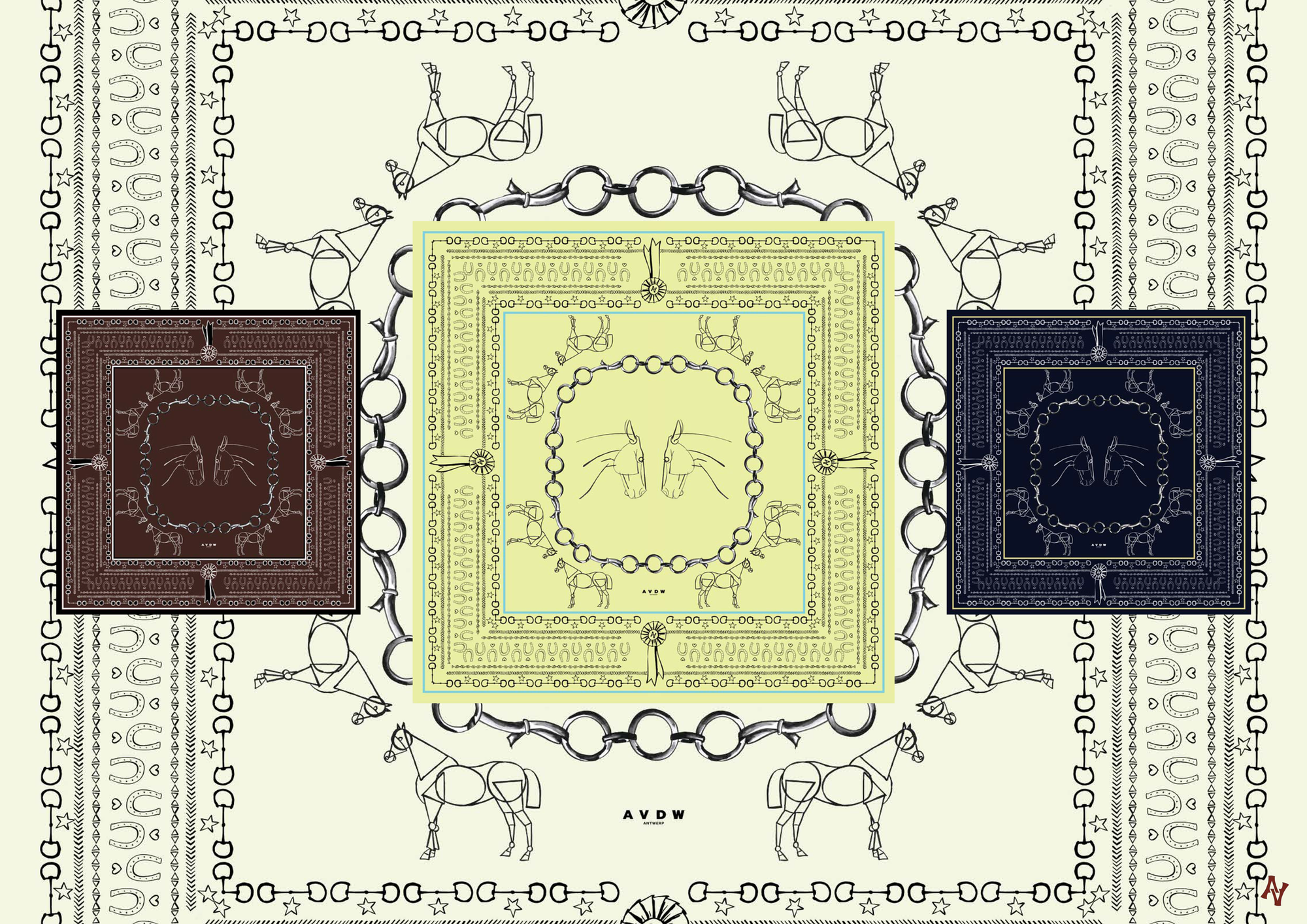 Being a lover of horses, Annick went back to her roots with the current collection. Of course implementing prints with horses was a must. Besides a literal translation, the “roots” can also be sensed in the use of material and the combination of colors.