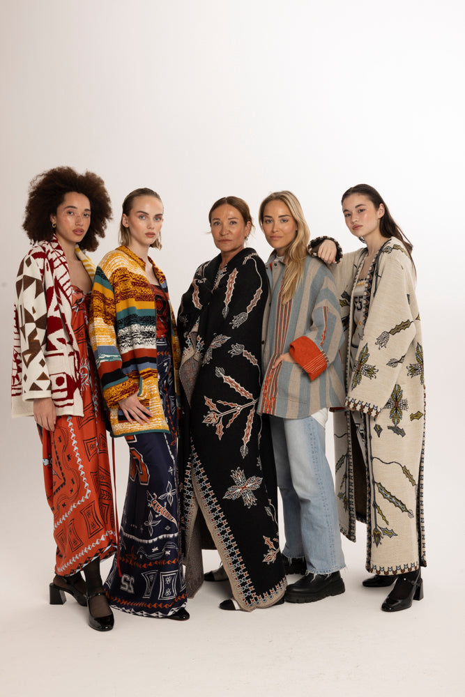AVDW’s story began with colourful scarves, bold jewellery and vintage treasures collected during Annick’s travels. A turning point came with the discovery of South African Lesotho blankets — the inspiration behind the one-of-a-kind MANTA coats, and the true beginning of AVDW as a fashion label.