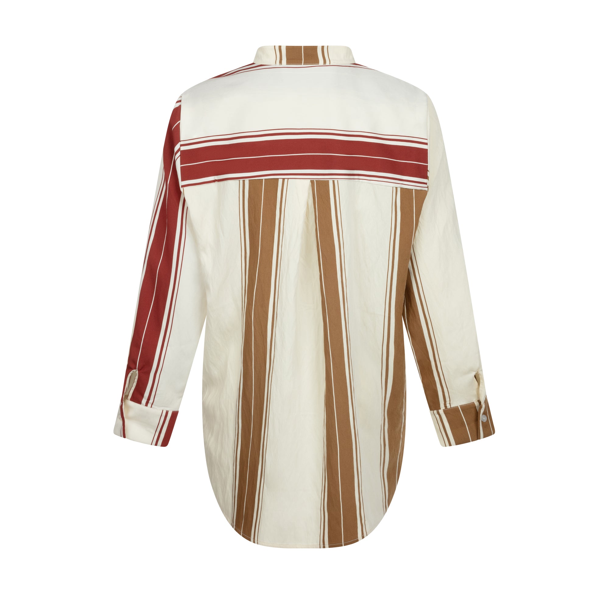 Button-down shirt in cotton, featuring a bold striped composition in contrasting tones. The fluid placement of the lines creates a dynamic yet balanced look, while the relaxed cut ensures everyday ease.